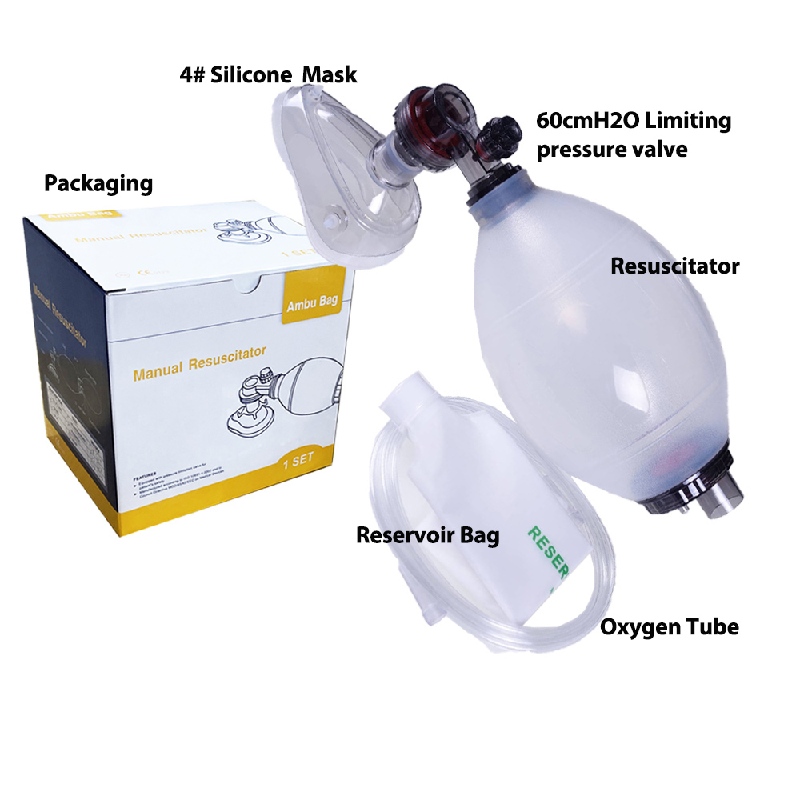 جهاز الإنعاش اليدوي مصنوع بشكل أساسي من السيليكون الطبي، الذي يتميز بمرونة فائقة، وقابلية للتمدد، وتوافق حيوي ممتاز. وهو ناعم الملمس، ويتناسب تمامًا مع الوجه، مما يساعد على تقليل إصابات الضغط على وجه المريض.