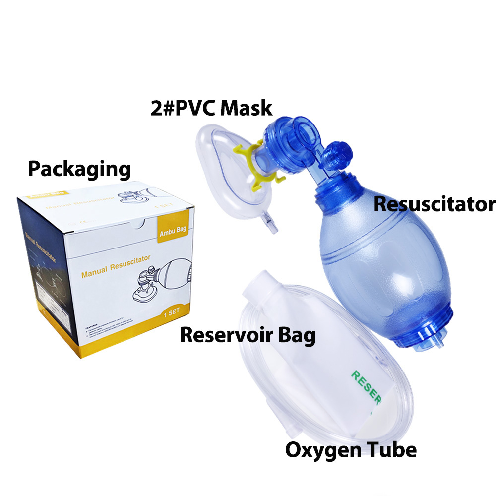 جهاز الإنعاش اليدوي مصنوع بشكل أساسي من مادة PVC طبية 100%، والتي تتميز بمرونة فائقة، وقابلية للتمدد، وتوافق حيوي ممتاز. وهو ناعم الملمس، ويتناسب تمامًا مع الوجه، مما يساعد على تقليل إصابات الضغط على وجه المريض.